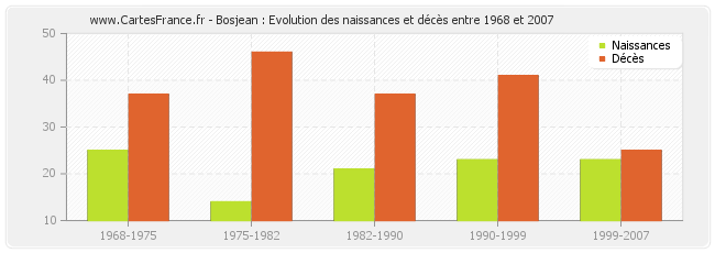 Bosjean : évolution des naissances et décès de 1968 à 2007