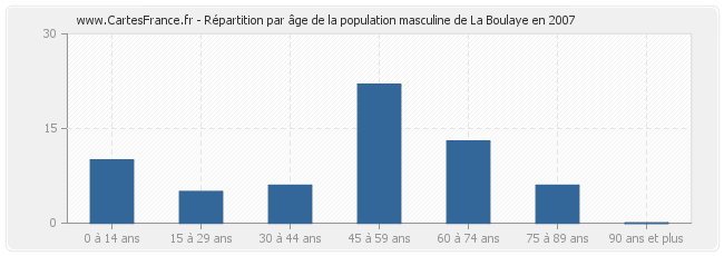 Répartition de la population masculine de La Boulaye par âge en 2007 :