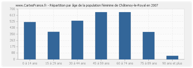Répartition de la population féminine de Châtenoy-le-Royal par âge en 2007 :