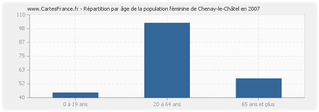 Répartition de la population féminine de Chenay-le-Châtel par âge en 2007 :