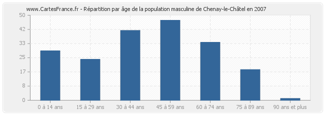 - Hommes de 45 à 59 ans habitant Chenay-le-Châtel : 47