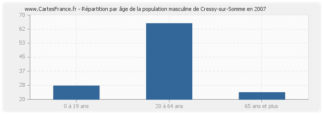 - Hommes de 20 à 64 ans habitant Cressy-sur-Somme : 65