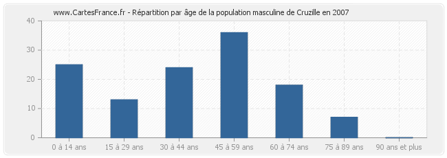 - Hommes de 45 à 59 ans habitant Cruzille : 36