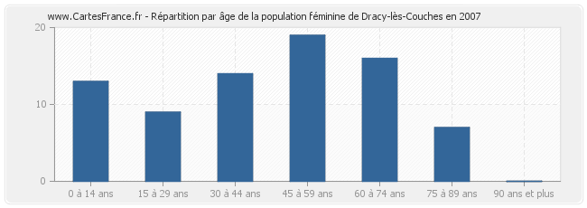 - Femmes de 45 à 59 ans habitant Dracy-lès-Couches : 19