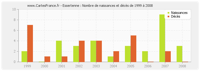 - Essertenne en 1999 : 2 naissances et 7 décès