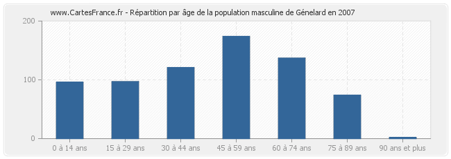 - Hommes de 45 à 59 ans habitant Génelard : 174