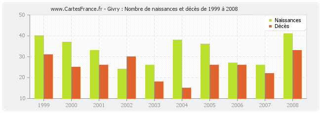 - Givry en 2008 : 41 naissances et 33 décès