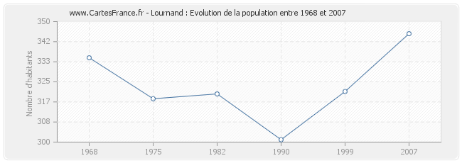 La population de Lournand était de 345 habitants en 2007, 321 habitants en 1999, 301 habitants en 1990, 320 habitants en 1982, 318 habitants en 1975 et 335 habitants en 1968.