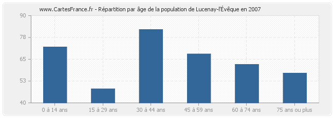 - Population de Lucenay-l'Évêque de 30 à 44 ans : 82 habitants