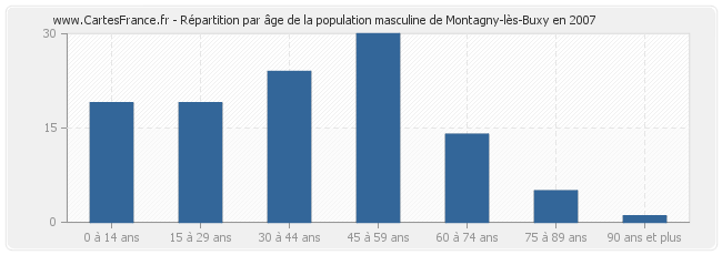 - Hommes de 45 à 59 ans habitant Montagny-lès-Buxy : 30