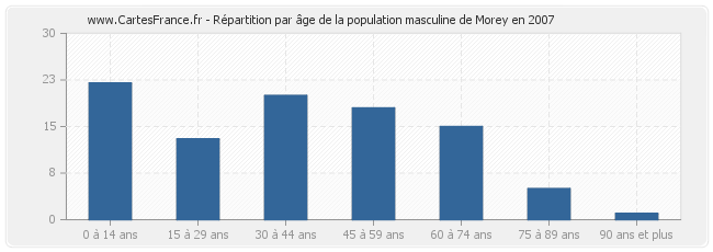 - Hommes de 0 à 14 ans habitant Morey : 22
