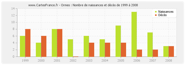 - Ormes en 2006 : 13 naissances et 2 décès