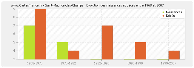 Saint-Maurice-des-Champs : évolution des naissances et décès de 1968 à 2007