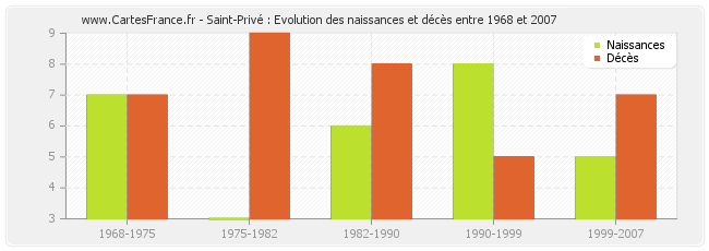 Saint-Privé : évolution des naissances et décès de 1968 à 2007