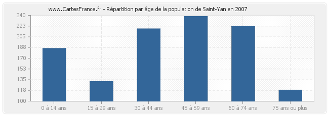 - Population de Saint-Yan de 45 à 59 ans : 238 habitants