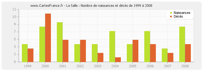 La population de La Salle était de 484 habitants en 2007, 440 habitants en 1999, 464 habitants en 1990, 448 habitants en 1982, 393 habitants en 1975 et 422 habitants en 1968.