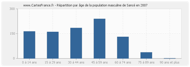 Répartition de la population masculine de Sancé par âge en 2007 :