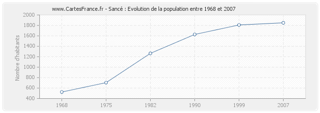 La population de Sancé était de 1 850 habitants en 2007, 1 809 habitants en 1999, 1 627 habitants en 1990, 1 265 habitants en 1982, 704 habitants en 1975 et 524 habitants en 1968.