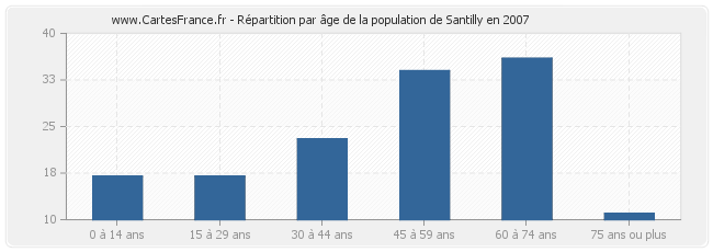 - Population de Santilly de 60 à 74 ans : 36 habitants