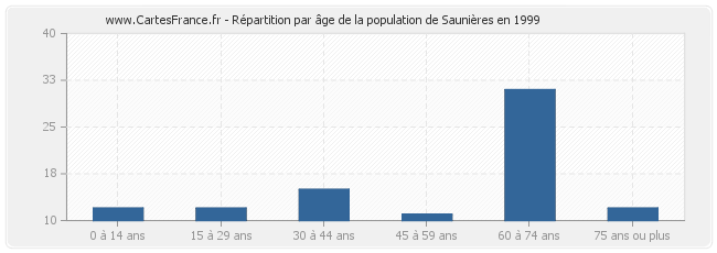 - Population de Saunières de 60 à 74 ans : 31 habitants