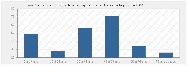 - Population de La Tagnière de 45 à 59 ans : 71 habitants