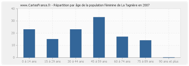 Répartition de la population féminine de La Tagnière par âge en 2007 :