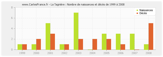 La Tagnière : naissances et décès de 1999 à 2008