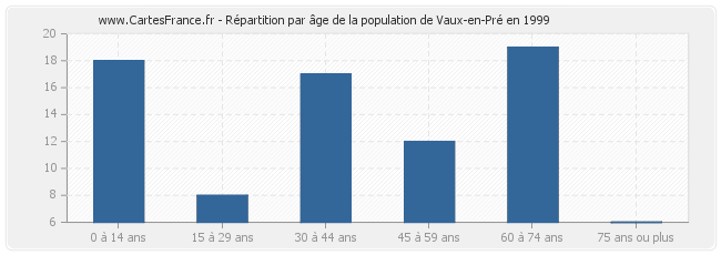 Répartition de la population de Vaux-en-Pré par âge en 1999 :
