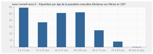 - Hommes de 0 à 14 ans habitant Ardenay-sur-Mérize : 59