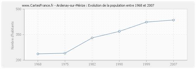La population d'Ardenay-sur-Mérize était de 436 habitants en 2007, 424 habitants en 1999, 369 habitants en 1990, 331 habitants en 1982, 241 habitants en 1975 et 237 habitants en 1968.