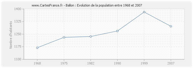 La population de Ballon était de 1 297 habitants en 2007, 1 382 habitants en 1999, 1 269 habitants en 1990, 1 236 habitants en 1982, 1 231 habitants en 1975 et 1 169 habitants en 1968.