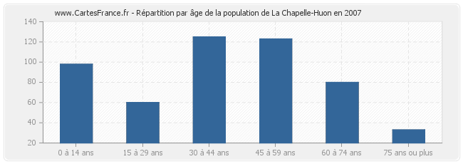 - Population de La Chapelle-Huon de 30 à 44 ans : 125 habitants