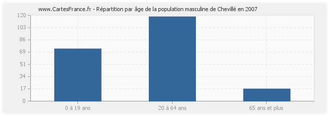 - Hommes de 20 à 64 ans habitant Chevillé : 118