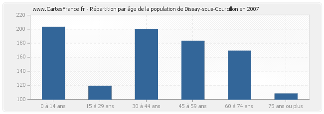- Population de Dissay-sous-Courcillon de 0 à 14 ans : 203 habitants