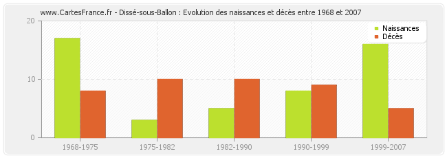 Dissé-sous-Ballon : évolution des naissances et décès de 1968 à 2007