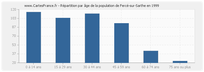 - Population de Fercé-sur-Sarthe de 0 à 14 ans : 115 habitants