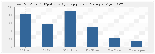 - Population de Fontenay-sur-Vègre de 30 à 44 ans : 91 habitants