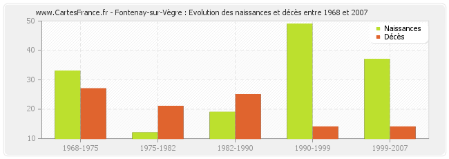 Fontenay-sur-Vègre : évolution des naissances et décès de 1968 à 2007