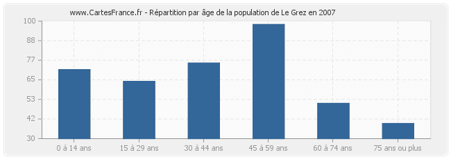 - Population de Le Grez de 45 à 59 ans : 98 habitants