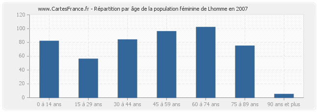 Répartition de la population féminine de Lhomme par âge en 2007 :