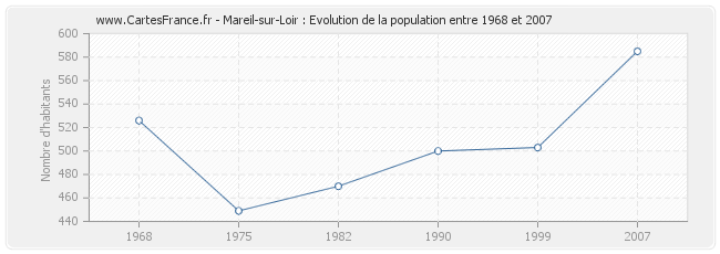 Historique de la population de Mareil-sur-Loir de 1968 à 2007