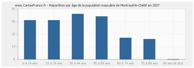 Répartition de la population masculine de Montreuil-le-Chétif par âge en 2007 :