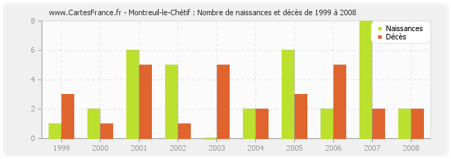 Montreuil-le-Chétif : naissances et décès de 1999 à 2008