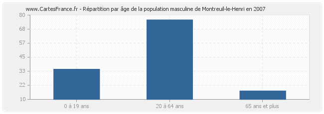 Répartition de la population masculine de Montreuil-le-Henri par âge en 2007 :