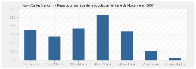 - Femmes de 45 à 59 ans habitant Mulsanne : 612