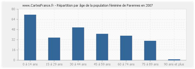 - Femmes de 0 à 14 ans habitant Parennes : 71