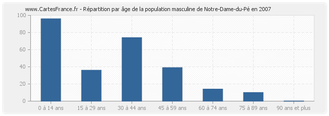 Répartition de la population masculine de Notre-Dame-du-Pé par âge en 2007 :