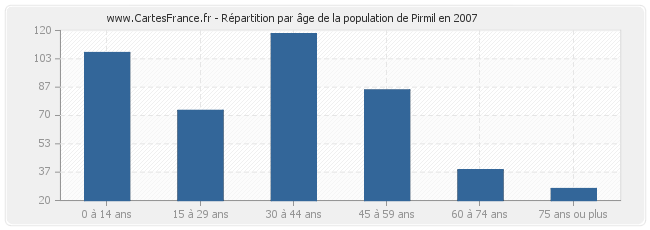 - Population de Pirmil de 30 à 44 ans : 118 habitants