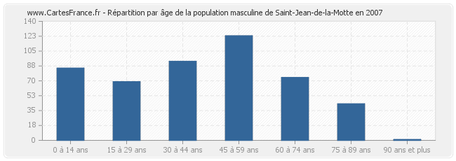 Répartition de la population masculine de Saint-Jean-de-la-Motte par âge en 2007 :