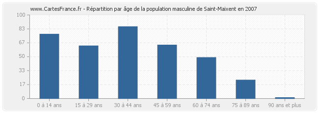 Répartition de la population masculine de Saint-Maixent par âge en 2007 :